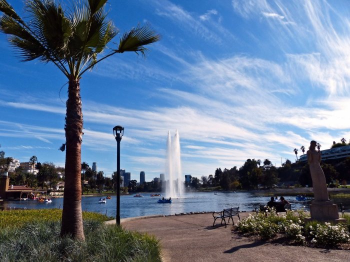 Pour digérer le cheesecake, quoi de mieux qu’une petite balade tranquille à pied, dans un superbe quartier historique victorien : Carroll Avenue (possibilité de se garer gratuitement à proximité). Après cela, vous aurez bien mérité un instant de détente et de repos à l’Echo Park Lake. Asseyez vous sur l’herbe et… profitez ! A moins qu’il vous reste encore quelques forces pour un tour de pédalo. Les palmiers, le lac, le soleil, la superbe vue sur Downtown. Alors, vous voyez que c’est beau L.A. !