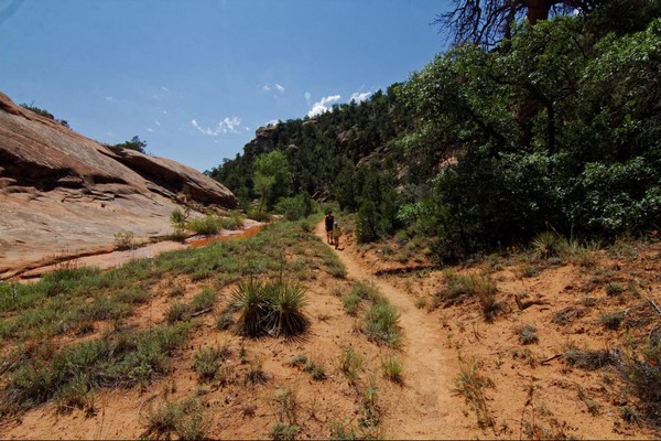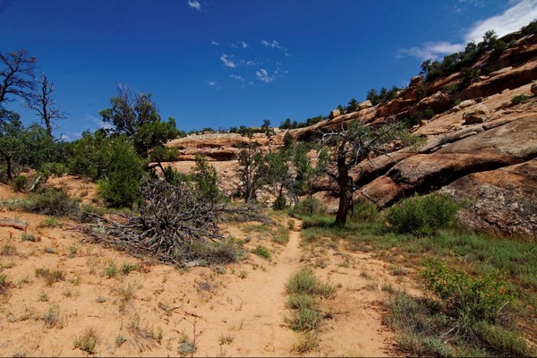 Depuis l’embranchement avec l’UT 95, il faut parcourir sur la piste environ 1.5 km. Juste avant le pont, il y a de la place sur la droite pour se garer, le trail commence sur la gauche. Après la descente, le canyon s’élargit et la marche est plus facile. Durant les 8 km aller-retour, vous trouverez de l’art rupestre, des restes d’habitations et même des fragments de poterie qu’il faut bien sûr laisser sur place ! Comme dans les autres branches du canyon vous trouverez les ruines sur votre droite, vers le nord. Certaines sont difficilement accessibles, il est préférable de les regarder de loin.